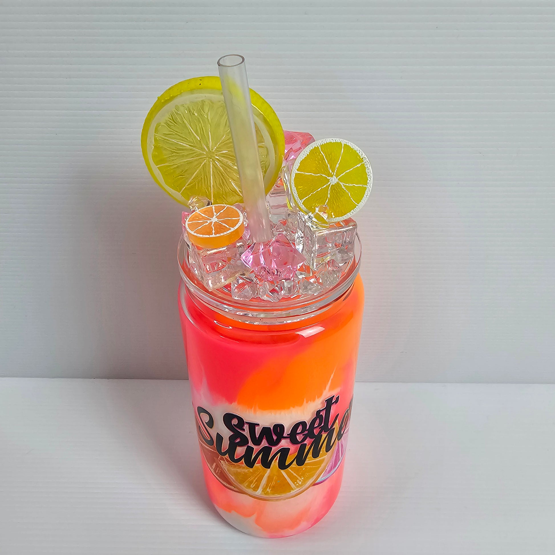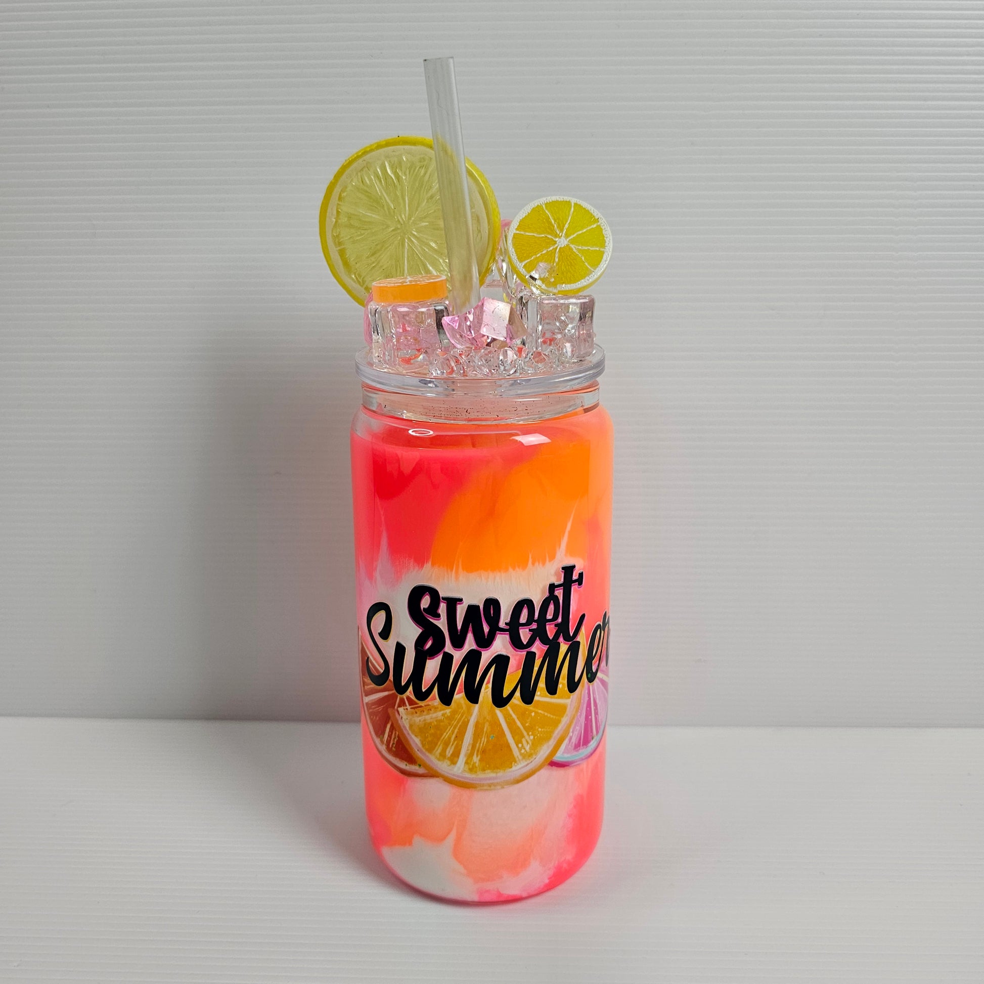 Elevate your tumbler with these stylish acrylic topper Kits! Designed to add a unique, personalized touch to your favourite drinkware. Whether you're sipping iced coffee, lemonade, or your favourite cocktail, these toppers are the perfect accessory for you to make your tumbler stand out. Each kit may vary but each includes Ice cubes in a variety of sizes, coloured ice chips and 3 pieces of fruit.